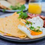 The accommodation comprises a balcony featuring a writing table, and modern comforts like a flat-screen TV with satellite channels. A highlight of the apartment for guests is the presence of a dryer and towels in the bathroom.